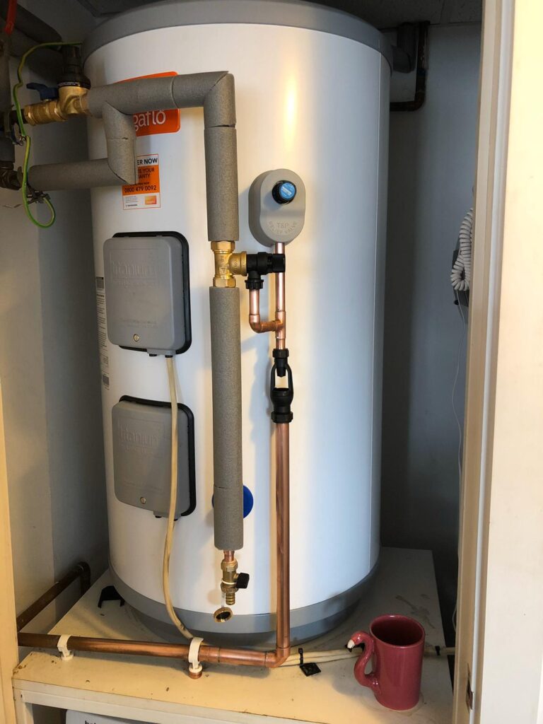 Our replacement Megaflo unvented cylinder, pictured below, in one of the aforementioned apartments. We were very pleased to hear that the management company passed our installation straight away. All other replacement cylinders required the installers to return to rectify installation defects.